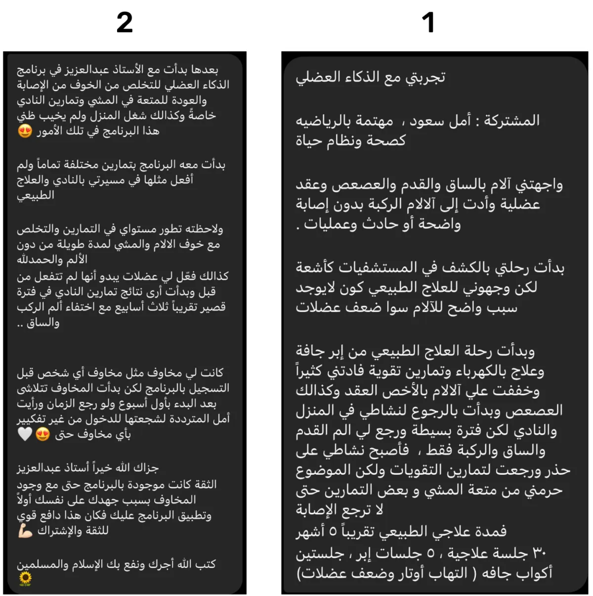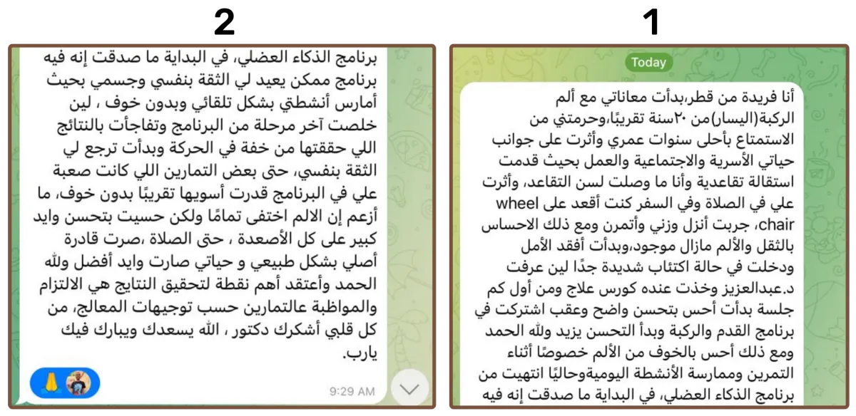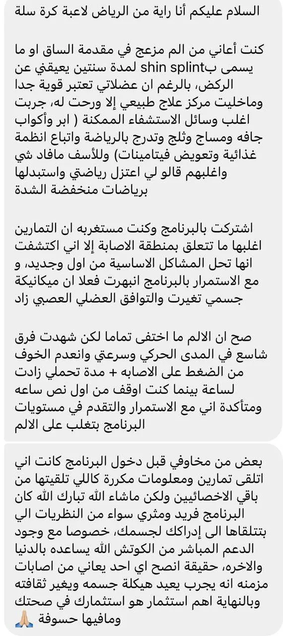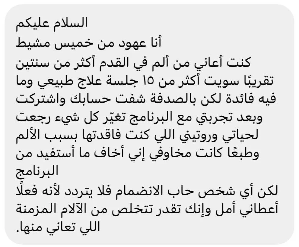 هذا الفشل خلاني أبحث عالميًا عن حلول بديلة. وبعد سنوات من التجارب على نفسي والتعلم من أمهر المدربين والمعالجين، طورت منهج الذكاء العضلي الذي ساعد مئات الأشخاص على التخلص من الألم والعودة لحياتهم الطبيعية بدون خوف من تكرار الإصابات.